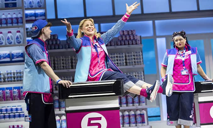 River Medway is another of the musical’s returnees. A familiar face from the third season of RuPaul’s Drag Race UK, he plays Jem – a Better Best Bargains customer, Robbie’s love interest and a drag queen. “So it’s the perfect part for me! Jem has his own drag persona, which the audience gets to see when he performs Chain Reaction. Maybe I’m biased but it’s my favourite number in the show.”