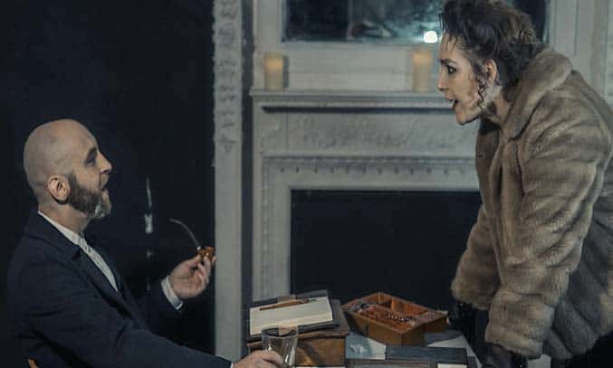 Playing at The Crypt in St. Peter’s Bethnal Green, Immersive Picture of Dorian Gray begins from the moment you enter the venue. The audience is left to mingle around various props and clues left around the venue, and the cast introduces themselves in character, talking about their lives and events that are due to happen shortly. Every actor fulfils their part perfectly, with a special mention to Nadia Lamin for her performance as Lady Victoria Wotton and Piers Mackenzie for his role as Dorian Grey, adding a definite vibe of Andrew Scott to his character.